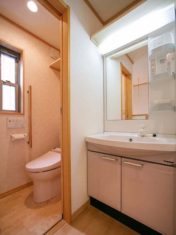 トイレと洗面室は、洋室から直接入れるようになっていて、動線がとてもスムーズ。 将来、介助が必要になったとしても、動線がシンプルなら、介助する方もされる方も負担が軽減されます。