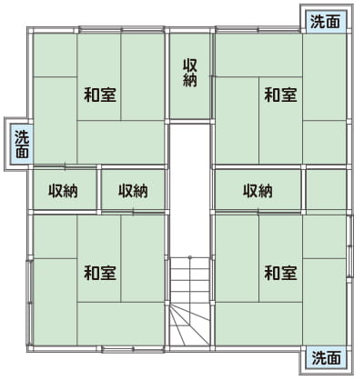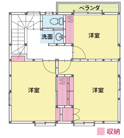 2階に4つあったお部屋は3つに減らし、トイレと洗面スペースを設けて、寝室や客間としてお使いになります。