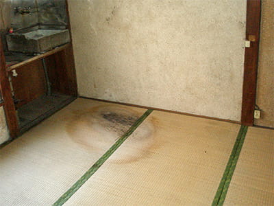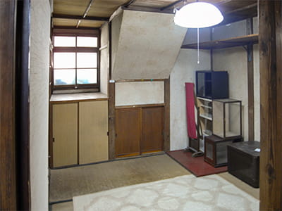 2階に上がると、四畳半の下宿部屋が並んでいます。 現代ではほとんど見られないノスタルジックな雰囲気ですが、各部屋に雨漏りが見られました。 雨漏りによって、家の劣化が進んだようでした。
