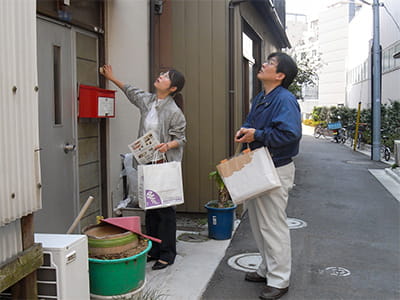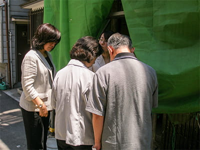 コーディネーターが近隣にお住まいの方を訪ね、着工の挨拶をします。