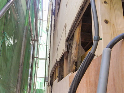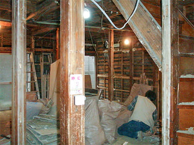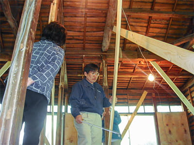 一週間かけて、大工が手壊しで解体を行います。経年による劣化が激しかったため、仮で補強をかけながら解体しました。