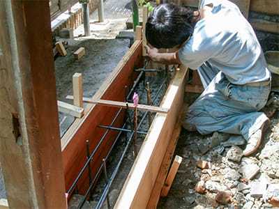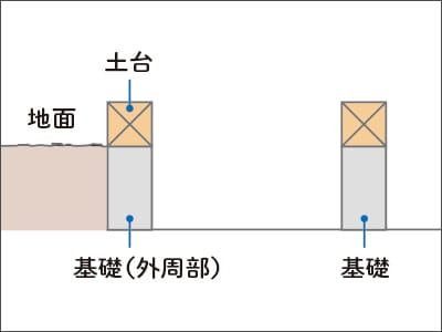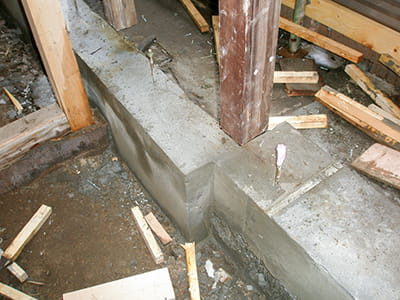 雨水が浸入しないように、地盤沈下などの影響で基礎が低くなっているのを解消したい。