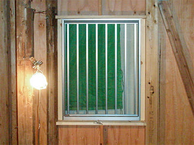 リビングの外はすぐ道路になっていて、通行人の目が気になるため、縦面格子付きの小さい窓を選びました。 断熱性、防音性に優れたペアガラスのサッシです。奥様は「リフォームしたら外の音が聞こえなくなった」とお喜びでした。