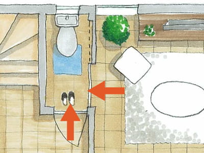 また、2つの経路があることは、介護が必要になった際も、非常に役立ちます。 例えば、狭いトイレで身体の向きを変えるのは一苦労ですが、もう一つの出入口からなら介助もしやすくなります。