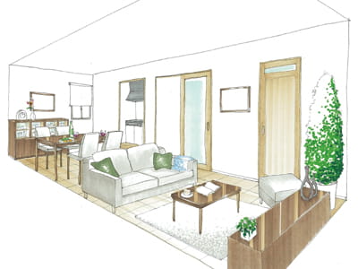 内装だけでなく構造部分にも、国産のヒノキなど、身体に負担の少ない自然素材を採用します。 自然素材は化学物質を使用していないので、シックハウス症候群の心配もありません。 こだわりの素材で、住む人にやさしい住まいを実現します。