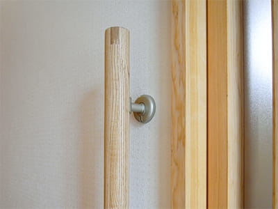 また、トイレや玄関など、大きな動作をする箇所には、手すりをつける計画です。 しっかりした手すりを設置するには下地が必要なため、設計の段階から計画しました。