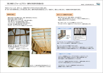 もう一つのポイントは、耐震性や断熱性など、建物自体の性能の改善です。 新築とまったく同じ、とはいきませんが、限りなく新築に近い性能まで改善できるようなご提案となっています。