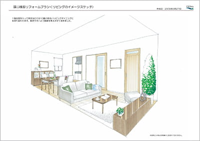 下記は、プレゼンテーション時に実際に提出したリフォームプランの一部です。 この他にも、窓サッシや屋根、外壁などのハードな部分から、室内建具や床・壁の素材などをご提案しました。