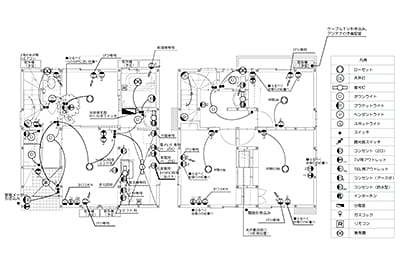 すべての内容を配線図に記載し、工事を行います。 現場では、配線図に合わせて工事を進めるので、間違いがあっては大変です。 電気配線の計画は、私たちコーディネーターにとって重要な役割の一つなのです。