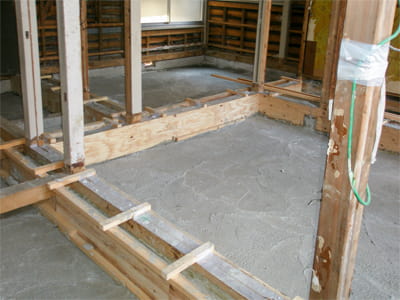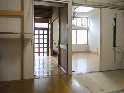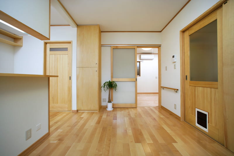 まず、お部屋や廊下との間にある段差。 築年数の長い住宅でよく見られる段差を解消して、フラットな床にします。