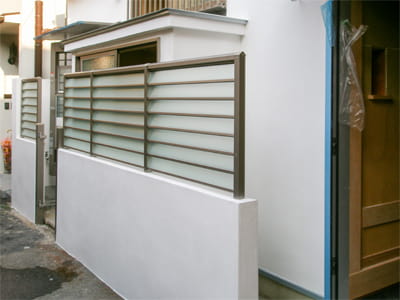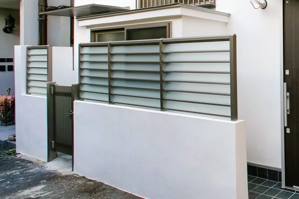 塀の上半分は、半透明のおしゃれなフェンスに変わりました。 住宅密集地にあるため、室内が暗かったというS様邸ですが、このフェンスなら光が届きます。 スリット入りなので通風の問題もありません。