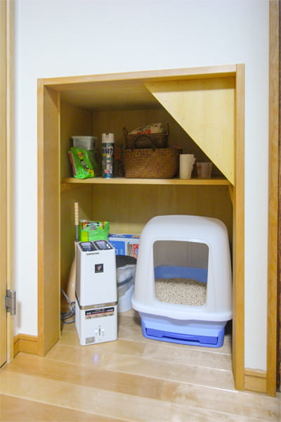 リフォーム前は猫ちゃんのトイレを置く場所がないため、仕方なく廊下に置いていたそうですが、家族が通る時や来客時には邪魔になっていたそうです。