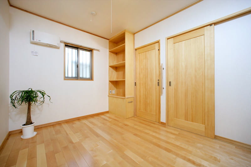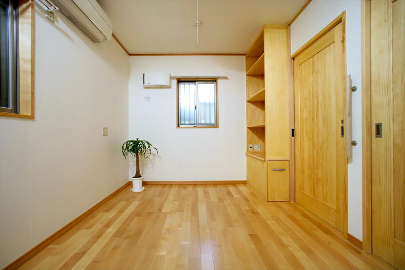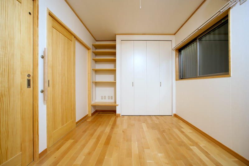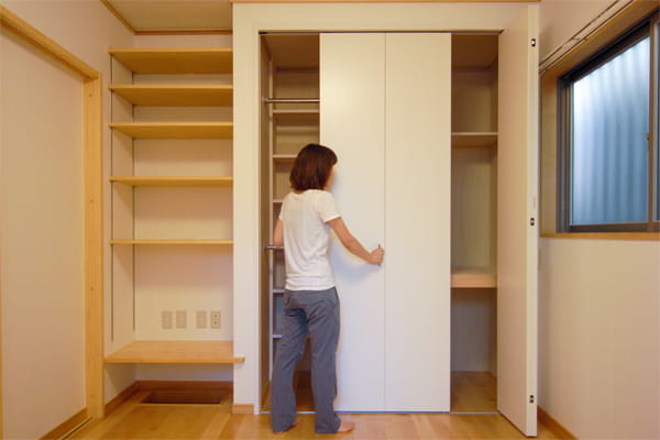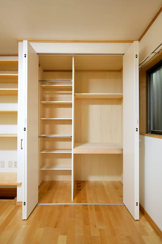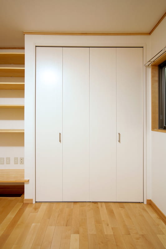 ご両親のお部屋にも収納をたっぷり設けています。 お父様とお母様それぞれに専用の収納スペースを造作して、お部屋に置かれていた荷物をすっきりしまえるようになりました。