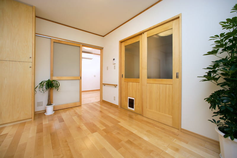 S様邸の5匹の猫ちゃんは、おうちの中を自由に行き来していますが、ご両親のお部屋だけは立入禁止。 でも、扉を閉めたままにしておくと、暗くて通風もできなくなってしまいます。