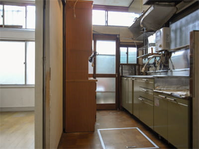 S様邸は定期的にメンテナンスをされていましたが、築40年を超えて経年の劣化は避けられず、特にキッチンまわりはかなり傷みが見られました。S様は床の傷んでいないところを選んで歩いていたそうです。