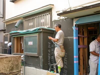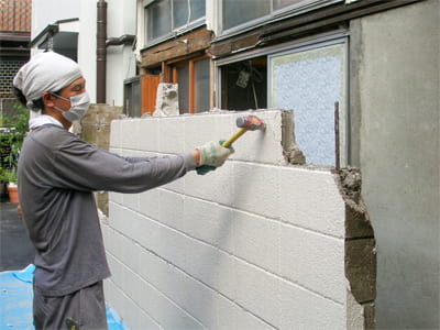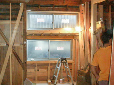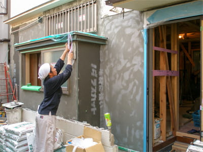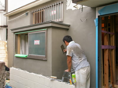 窓の位置が変わるのに合わせて、外部の壁もリフォームします。