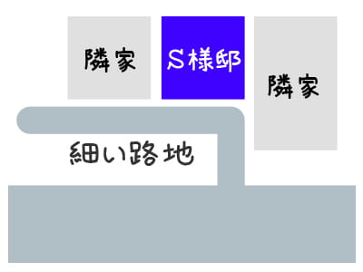 S様邸は細い路地を入った先にあり、隣家との隙間もあまりありません。 エコリフォームでは東京都心の住宅密集地のリフォームを多く手がけていることから、S様もご相談くださったそうです。