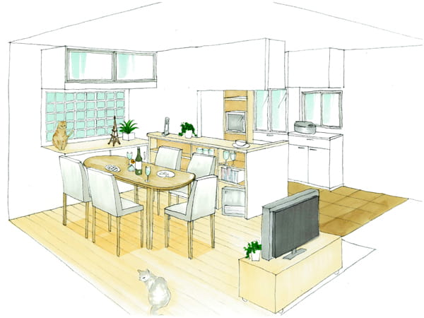S様は可愛い猫ちゃんを5匹飼っていらっしゃいます。 多頭飼いは賑やかで楽しいものですが、飼い主さんの手間は大変です。 そこで、猫ちゃんも暮らしやすくなり、お世話の手間も軽減される工夫を計画に盛り込みました。