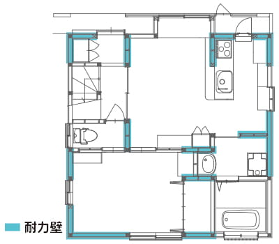 2面が窓だった角の部分は、窓の位置を変え、もともと窓だったところは地震に強い耐力壁に。 これで耐震性が大幅にアップして、安心できるお部屋になります。