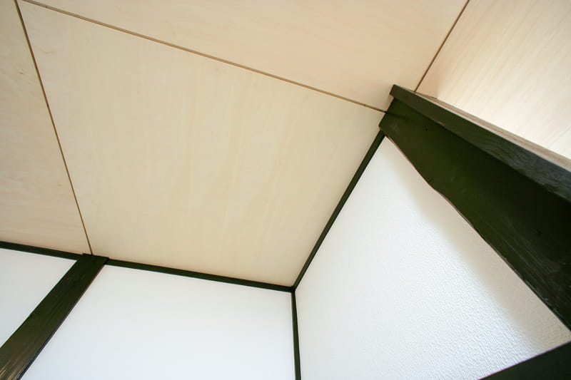 T様邸は以前に雨漏りしていたこともあったそうで、天井が劣化していました。 そこで、シナ合板を目透かし張りにして、明るくおしゃれな天井にリフォームしました。 目透かし張りは、板と板の間を3~6ミリほど空ける施工方法で、天井が広くきれいに見えます。