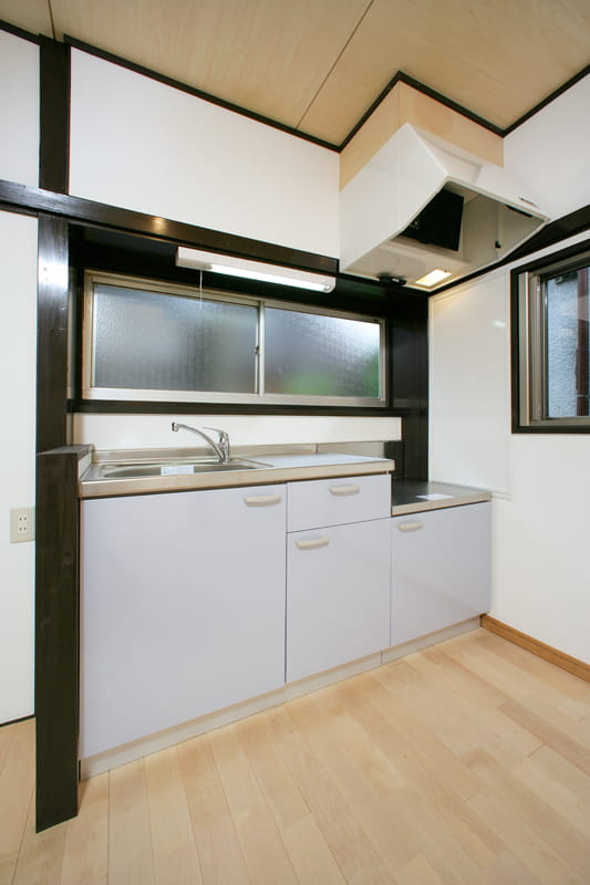 リフォーム前は超レトロな流し台がありましたが、現代の暮らしにはちょっと合いません。 そこで、このスペースにぴったり収まるサイズの、コンパクトでシンプルなキッチンをお選びしました。 これならお料理も楽しめそうですね。