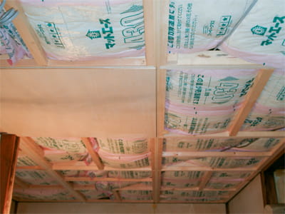 元は断熱材が入っていなかった天井にも、たっぷり断熱材を入れました。