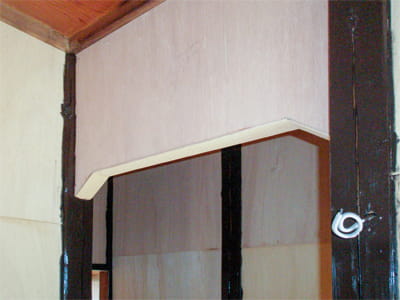 昔の家の面影を残す下がり壁はそのまま残し、きれいに合板を張って仕上げます。