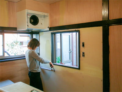 3箇所あった木製の窓をアルミサッシに交換して、断熱性を上げます。