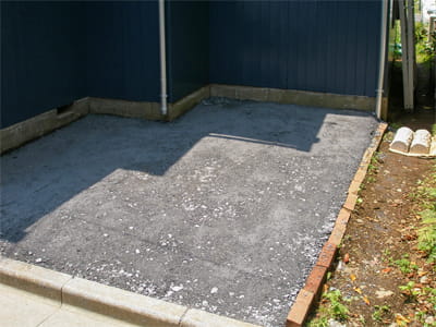 玄関横のスペースに砂利を敷いて、駐輪場として整備しました。
