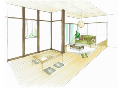 床に無垢フローリングを張ります。無垢材の調湿効果で、快適に過ごせるお部屋に。