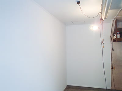 耐震補強が終わったら、工事のためにいったん壊した部分を元通りにします。 住居部分は、壁と床、天井に白いクロスを、床にはコルクタイルを張りました。