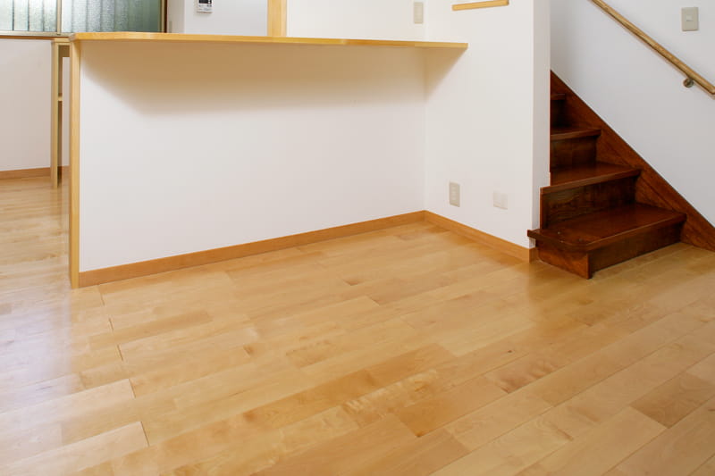 H様のご希望で、床の無垢フローリングは水に強いウレタンコーティングで仕上げました。
