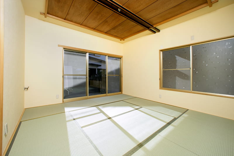 傷んでいた畳は、国産イグサを使ったエコ畳に交換しました。 安価な中国産の畳には農薬が多く含まれているものがあるため、エコリフォームでは国産の畳をおすすめしています。 主に九州で生産される国産イグサは減農薬栽培で安心。輸入品よりも長持ちします。