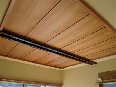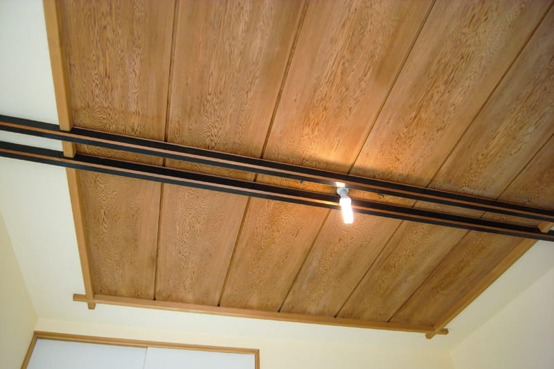 天然木の木目が魅力的な和室の天井は、そのまま残されることになりましたが、経年の汚れで黒ずんでいました。