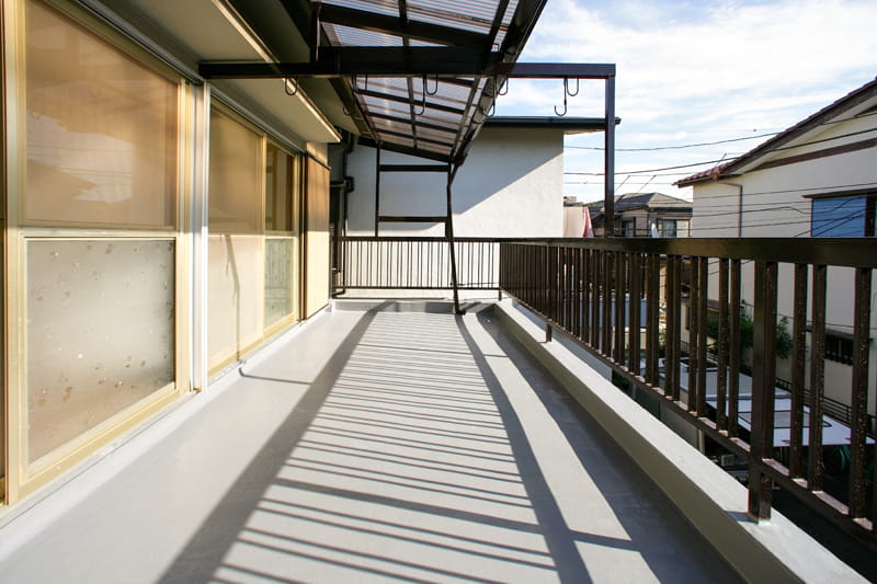 日当たりが良い広々としたベランダは、洗濯物やお布団を干したり、グリーンを育てたりできる素敵なスペースです。 しかし、コーティングが傷んでいて、雨漏りの危険性がありました。
