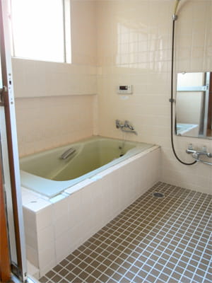 足を伸ばしてゆっくり入れるお風呂の広さはそのまま、浴槽とシャワー、床のタイルを交換しました。 壁などそのまま残した部分もプロの手でクリーニングを行い、ピカピカのお風呂になりました。