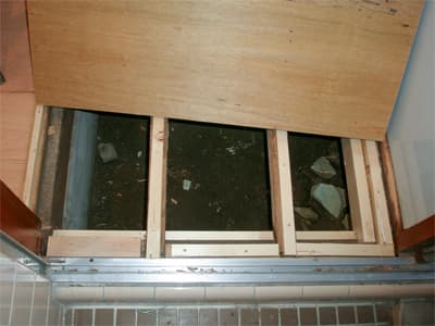また、和室の押入れの床下にもシロアリの食害がありました。 押入れの裏が洗面室なので、食害が広がったと思われます。