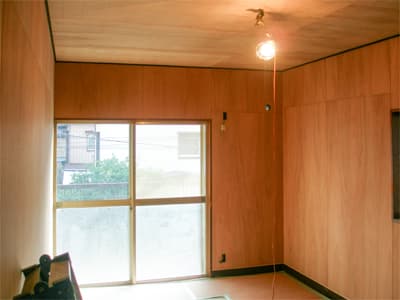 リフォーム前は物置として使われていたそうで、壁面のカビが目立っていました。 今回のリフォームで内装を整え、明るい空間になります。