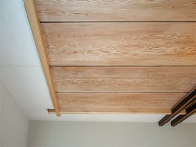 こうした汚れはプロの手による灰汁洗いで、びっくりするほどきれいになるんです。 クリーニング後は建築当時の味わいを取り戻し、明るい色合いの天井になりました。