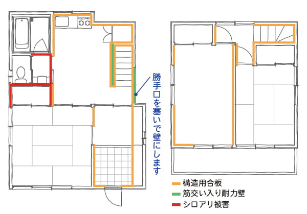 勝手口を塞いで耐力壁に。