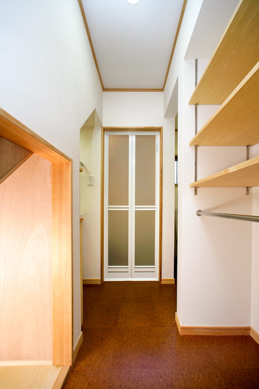 お風呂の窓は向きを変え、トイレは位置を変えて窓を設置。水まわりに風が通るようになりました。 また、床はコルクタイルを採用しました。コルクタイルは水に強く、足ざわりがソフトで快適です。夏はベタつかず、冬でもヒヤッとしません。
