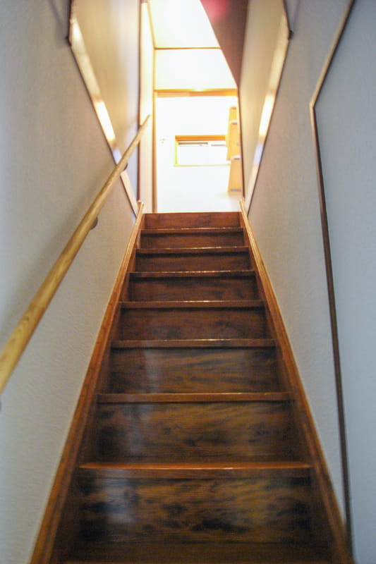 ただし、階段の勾配が急なので、手すりを取り付けることにしました。 手すりに体重をかけても外れないよう、下地のある位置にしっかりと設置しました。