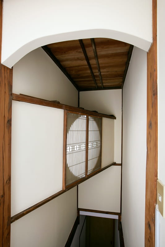 階段の上の飾り窓、まるで高級旅館のようです! お部屋の側から見ると、斜めの飾り棚のようになっているのも素敵ですね。 こんな貴重な趣を大切に残していきます。