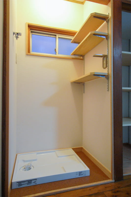 2階にあったトイレは不要とのことで、洗濯機置場にリフォーム。 洗濯機を置くのにちょうどいいサイズの空間です。