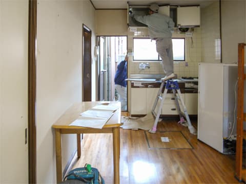 着工前に、建材や施工業者の手配を行います。その間に、F様は荷物をまとめてリフォームに向けた準備を進めてくださいました。 不要な荷物の撤去作業も済み、いよいよリフォーム工事が始まります!