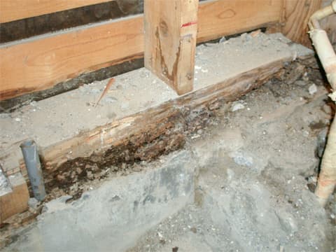 シロアリは湿った木に発生する腐朽菌が大好物です。 築年数が長い建物では、水まわりを中心に、水漏れや床下の湿気で木材が湿り、シロアリ被害につながることが多いので注意しましょう。