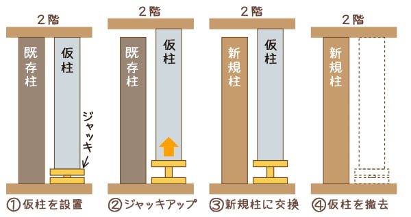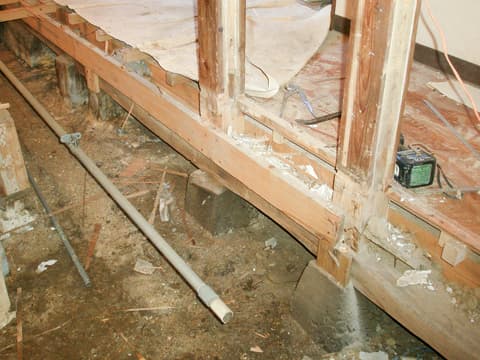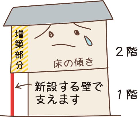 傾きが生じた2階を支える