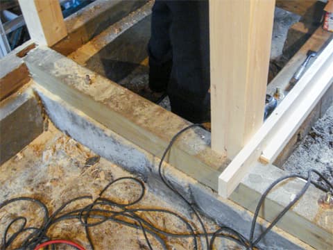 そこで、勝手口の横に補強用の壁を新しく造ることにしました。 この壁がこれ以上の傾きを防ぎ、建物全体の耐震性を向上させます。