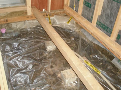 建物外周部の基礎は解体前に確認できますが、建物内部の基礎は、床を解体しないと確認できません。 床下収納があれば解体前でも調査が可能ですが、F様邸に床下収納はありませんでした。