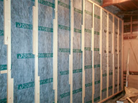 そこで、高性能の遮音材を壁に入れることにしました。 これで隣家の音も気にならず、こちらの音でご迷惑をかけることもなくなりますね。